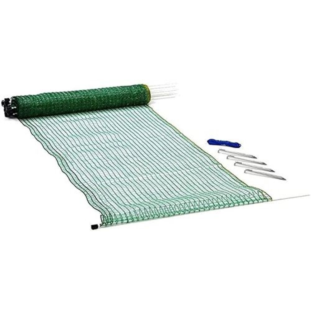 ToepassingOmheining ter bescherming in de tuin, tuin en campingIdeaal voor het uitzetten van stopcontacten en mobiele behuizingenZeer geschikt als klimhulpmiddel en als veiligheidshek voor kleine kinderen en kleine dierenEigenschappen:- Gewicht 2,7 kg- 20m lang en voorzien van elf polyamidepalen geweven in de gebreide stof (elke 200cm)- Elke paalkop met oogje, de maaswijdte van het hekwerk is ca. 0,5x0,5cmTechnische specificaties:- Afrasteringslengte 20m- Hek hoogte 80cm- Afstand tussen staven 200cm- Lengte staaf 101cm- Maasbreedte ongeveer 0,5x0,5cm- Netto groene stapels wit: 11 paaltjes- Oog hoofd 0,8 cm- Staaf 12x12mm- Niet geleidend