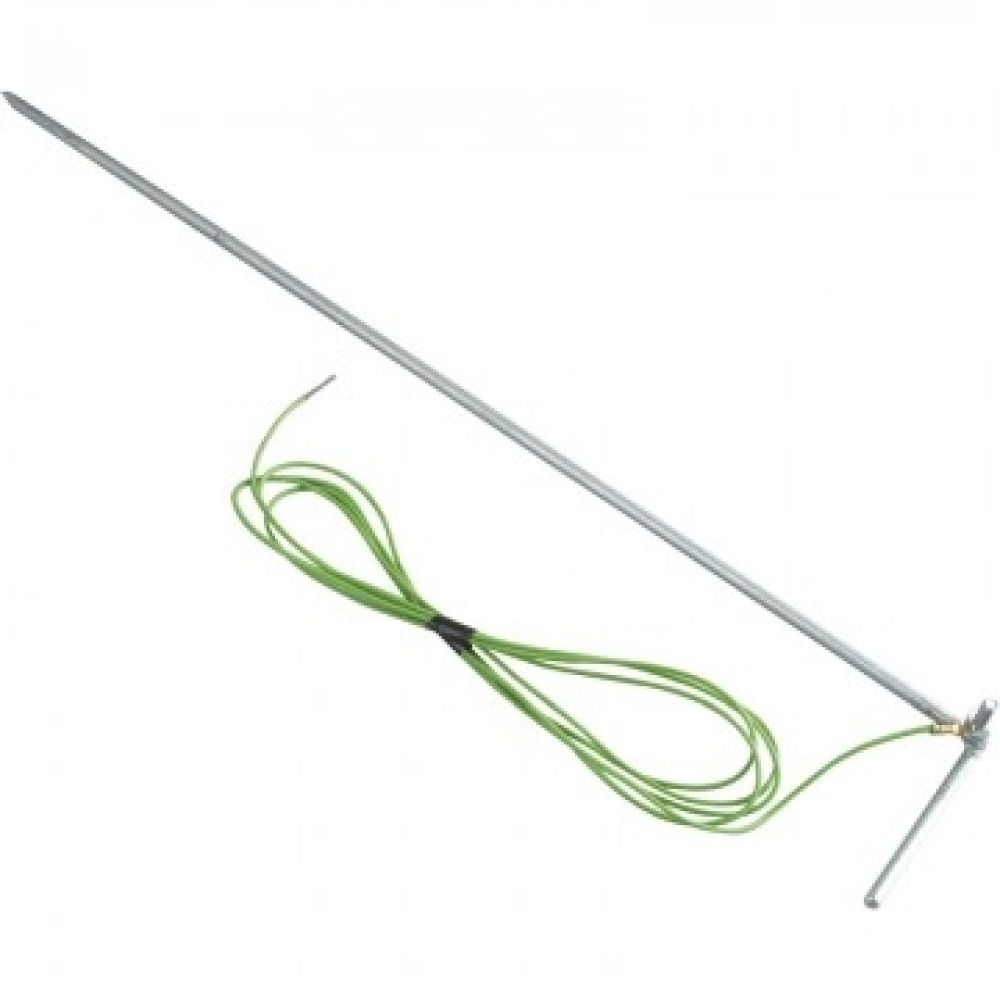 Extra aardpen speciaal voor kleine schrikdraadapparaten op batterij. Gegalvaniseerd 0,65m lang met handvat voor het gemakkelijk uittrekken en 3m kabel met 3mm penaansluiting.