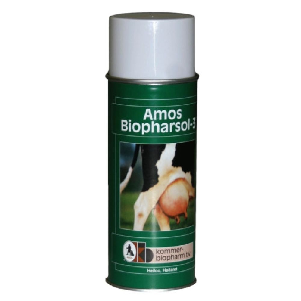 Amos biopharsol-3Tepelspray oplossing. Desinfecterend en pijnstillend bij verwonde, pijnlijke of schrale tepels.DoeldiersoortenHerkauwers.Werkzame stoffenThymol 6,7 mg/gBenzocaïne 8,6 mg/gIndicatieDesinfectie van en pijnstillend bij verwonde, pijnlijke of schrale tepels.Contra-indicatiesGeen.DoseringVoor uitwendig gebruik. Voor het melken tepels goed reinigen. Na het melken aangetaste tepels sprayen tot verbetering is opgetreden. Op ca. 20 cm van het te behandelen oppervlak gedurende enkele seconden sprayen. Goed schudden voor elk gebruik.Wachttermijn0 dagen.InhoudAerosol container à 416 ml.REG NL 4233Uitsluitend voor diergeneeskundig gebruik – VRIJH