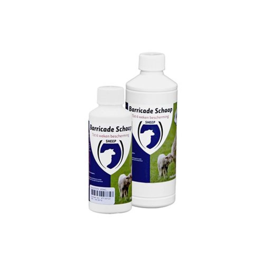 Opmerking:Door haar geurneutraliserende werking kent Barricade Schaap uitsluitend een afwerende werking, bij een eventuele madebesmetting zal eerst behandeld moeten worden met Made Repel. Veiligheid:Uitsluitend voor uitwendig gebruik.Restant Barricade Schaap kan zonder probleem op de mestvaalt of in de gierkelder gegoten worden. Barricade Schaap bevat geen milieu bezwarende stoffen.Bewaring:Buiten het bereik van kinderen bewaren. Tussen 5 en 25 graden Celsius. Buiten direct zonlicht.Barricade 2500ml 2500 ml vliegenbestrijding vliegen bestrijding schapen schaap