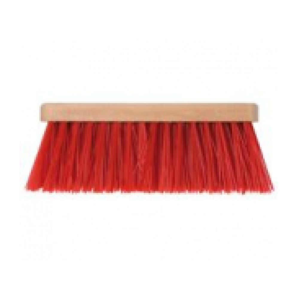 Bezem Rood 27,5cmHarde kunstvezels rood uitlengte 85mm. Voor het verwijderen van o.a. grof vuil, betonresten en bouwafval. Ideaal bij sneeuw en nat weer. Gebruik houten steel Ø 23,5 mm.