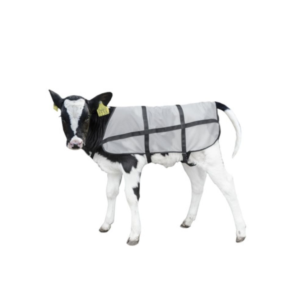 Bodyguard zomer dekjeHet kalverdekje voor de zomermaandenAdvies is om alle jonge dieren te voorzien van een rugdek om ze beter op temperatuur te houden. Wanneer kalveren het koud krijgen gebruiken ze al hun energie om op temperatuur te komen. Met dit kalverdekje kunnen ze die energie sparen en omzetten in groei. Bodyguard Calf Summer Blanket• Om verhitting te voorkomen• Gemaakt van ventilerende stof• Voorzien van UV-protector• Beschermt uw kalf tegen uitdroging als gevolg van oververhitting• Beschikt over Insect Bodyguard Technology ToepassenBij kalveren direct na de geboorte tot ongeveer 2 maand oud.In éénlingboxen alsook in groepshuisvestiging. Insect Bodyguard TechnologyWanneer insecten in aanraking komen met de Insect Bodyguard Technology zullen ze gedood worden. De Bodyguard Calf Summer Blanket is middels de Insect Bodyguard Technology met de biocide stof Permethrin behandeld, waarvan de werkzame stof is gebaseerd op een natuurlijke afscheiding van chrysanten. De werkzame stof is duurzaam verweven met de deken en blijft actief tot wel 75 wasbeurten. Materiaal: 95% polyester en 5% katoen.Ruglengte70 cmH