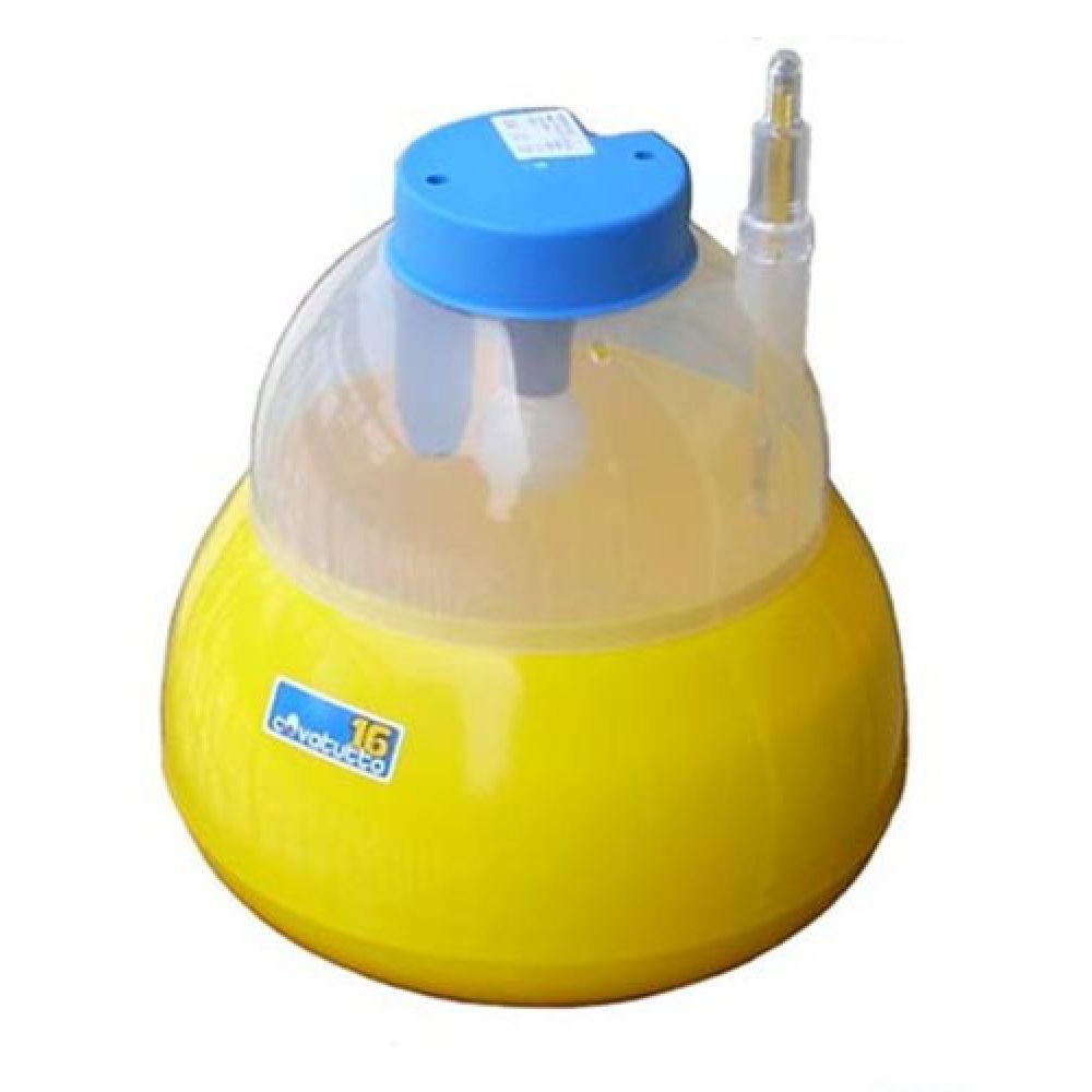 Broedmachine voor 16 eierenGeschikt voor 16 kippeneieren. Te gebruiken voor kippen-, fazanten-, eenden-, kalkoenen en ganseneieren. Met electrische thermostaat. Temperatuur is makkelijk af te lezen. Werkt veilig op 230V. Wanneer de broedmachine op temperatuur is gaat het lampje knipperen.