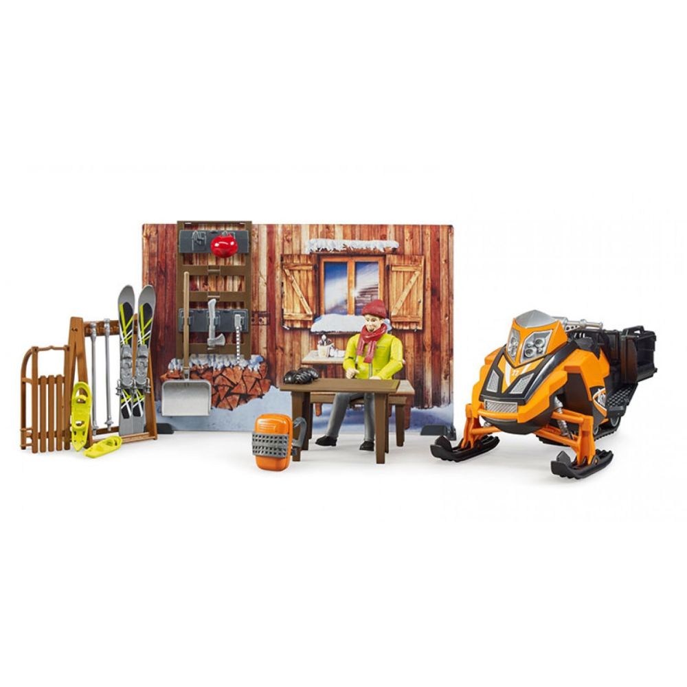 Bruder berghut met sneeuwscooterDeze berghut speelset van Bruder bWorld is het ideale startpunt voor activiteiten in wintersportgebieden, zoals skiën, snowboarden, langlaufen, sneeuwschoenwandelen, sleeën en rodelen. De bijbehorende sneeuwscooter staat al klaar voor snel vervoer door het sneeuwgebied. Inbegrepen zijn een speelfiguur in winterkleding met sjaal en muts en diverse accessoires, zoals ski's, sneeuwschoenen, een rugzak, slee, bankje en meer...Deze speelset in het thema ski-gebied / wintersport is onderdeel van van de Bruder bWorld collectie. Het speelgoed is gemaakt van hoogwaardig materiaal en uitgevoerd op schaal 1:16. Door de diverse speelfuncties staat dit speelgoed garant voor urenlang speelplezier!