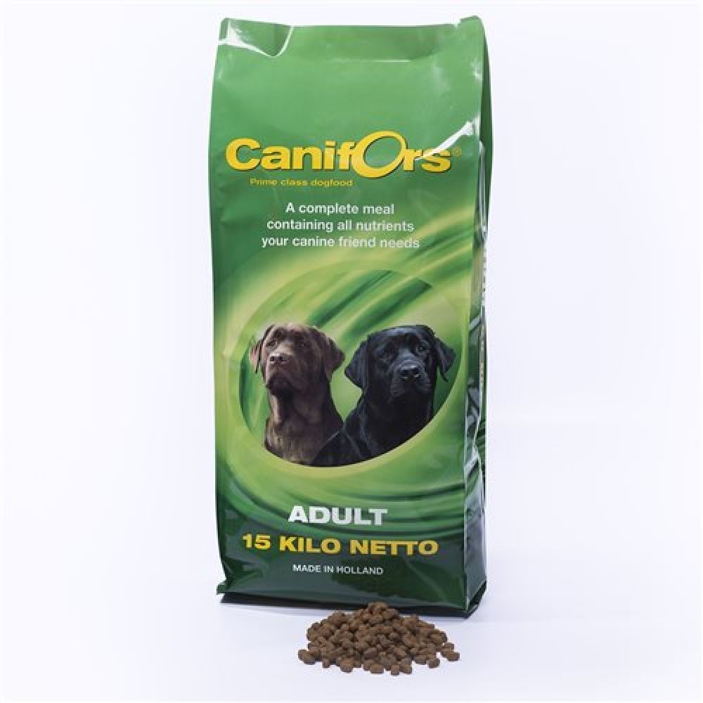 Canifors adult brok 15kgEen volledig voer, samengesteld uit de best beschikbare ingredienten. De verpakking geeft duidelijk de dagelijkse dosering aan. Het voer kunt u het beste droog bewaren in een voerton.