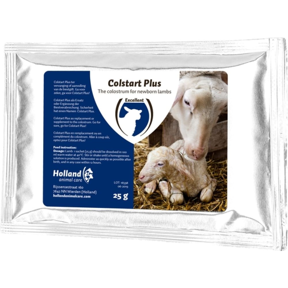 Colostrum voor pasgeboren almmeren, moederloze lammeren, zwakke lammeren en meerlingen. Biest van de hoofste kwaliteit. Bevat een combinatie van: Colostrum (met ca. 14g/100 gram antistoffen IgG), wiepoeder, plantaardige oliën, tarwegluten, energie, ijzer, cobalt, zink, mangaan, vit. A, vit. D3, Vit. E. Beschrijving:De eerste melk ''ook wel biest genoemd'' moet van zeer hoge kwaliteit zijn. Dat is dan ook het geval bij onze vervangende biest voor pasgeboren dieren. Voordelen Colstart Plus:⢠Vrij van ziektekiemen⢠Energie⢠Zeer smakelijk⢠Hoog aandeel (ca. 14 g/100 gram) antistoffen IgG⢠Lost perfect op⢠Vitamines⢠Probiotica