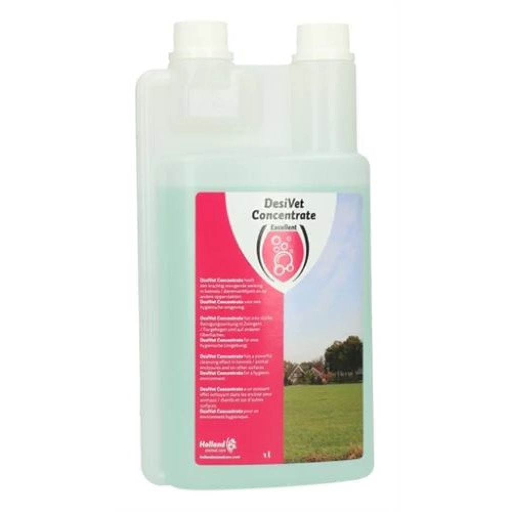 DesiVet Secure concentrate - 1LGebruik DesiVet Concentrate voor een hygiënische omgeving. DesiVet Concentrate heeft een krachtig reinigende werking in kennels / dierenverblijven en op andere oppervlakten. GebruiksaanwijzingVoor algemene toepassing (behandeltafel, instrumenten etc.): 1 deel Desivet Concentrate oplossen in 5 delen water.Voor toepassing in kennels en dierenverblijven: 1 deel Desivet Concentrate oplossen in 1 deel water.Spray de oplossing op de te behandelen oppervlakten. Laat het 3-5 minuten inwerken, daarna goed naspoelen met water. Voor meer informatie zie onder specificatie.Inhoud1 L5 LH