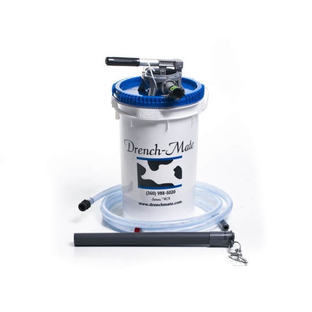 Drench mate - 24,5LEindelijk is er een professionele penspomp verkrijgbaar in Nederland!Ideaal om koeien direct na het afkalven te voorzien van alles wat een koe nodig heeft. Daarnaast is het ook belangrijk om de lebmaag verdraaiing tegen te gaan. Inhoud emmer: 24,5 liter500 ml doseren per pomp slag! Overzicht Onderdelen1: Emmer handvat2: Pomp handvat4: Slangaansluiting pomp5: Elleboog-stuk met PVC buis6: Emmer zonder deksel7: Voetjes onderpomp8: Bevestigings-materiaal voetjes onderpomp9: Koppeling slang14: Service Set15: Pomp-huis omhulsel16: Aluminium afdichtings-ring17: Inlaat18: Uitlaat19: Pomp aanslag21: Pomp en deksel22: Slang + mondbuis en neusklem25: Drench-Mate pomp los26: Neusklem27: Kunstof buis + neusklem H