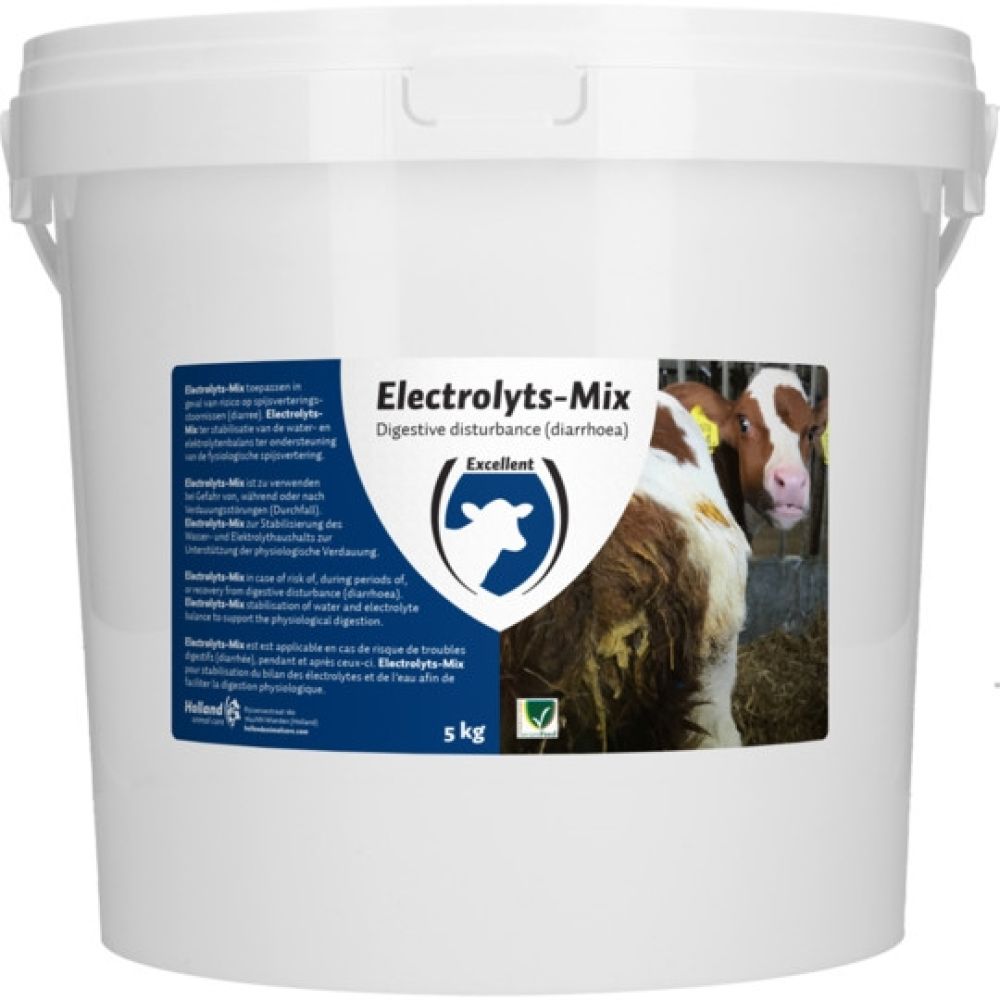 Aanvullend diervoeder (dieetvoeder) voor kalveren, biggen, lammeren, geitenlammeren en veulens ter stabilisatie van de water- en electrolytenbalans ter ondersteuning van de fysiologische spijsvertering. Toepasbaar bij kalveren in geval van risico op spijsverteringsstoornissen (diarree).Electrolyts-Mix is een hoogwaardige elektrolyten-mix voor aanvulling van zouten bij vochtverlies. Electrolyts-Mix zorgt voor een goede opname van vocht om uitdroging te voorkomen. Voldoende vocht is erg belangrijk voor het verteringsproces. Electrolyts-Mix lost goed op in het water en blijft in oplossing.