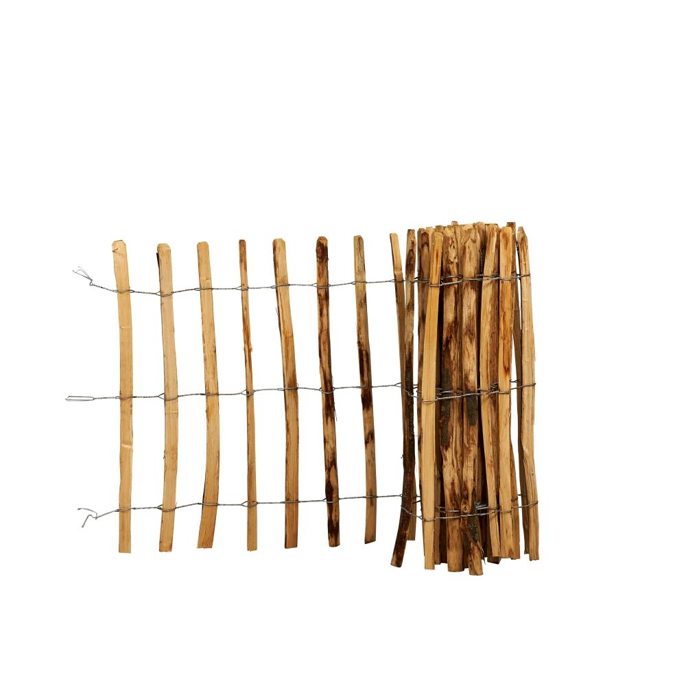 Engelse Raster 100cm hoog, 10m lang - 8-9cm latafstandOns schapenhek van 100 cm hoog is de manier om een veilige en stevige tuinafscheiding te creëren die niet uit de toon valt in uw tuin. Schapenhek is natuurlijk en duurzaam omdat de latten gemaakt zijn van 100% Engels kastanjehout. Dit hout kan zeer goed tegen vocht en heeft een zeer lange levensduur. Het hout verkleurt met de jaren en wordt langzaam iets grijzer. De latten zijn gemiddeld 3,5 cm dik en dus mooi robuust van uitstraling. Het hekwerk is aan elkaar gemaakt met 3 draden. Ook kunt u de hekken heel gemakkelijk aan elkaar koppelen!Een schapenhek 100 cm plaatst u tegen kastanjehouten palen. Uiteraard vindt u deze ook in onze webshop. Plaats de palen op 200 cm van elkaar en zorg dat de palen ongeveer 1,5 keer de hoogte van het hekwerk hebben. In dit geval heeft u palen nodig van ongeveer 150 cm hoogte.De latten zijn van een degelijke, robuuste maat. Dit bepaalt voor een belangrijk deel de kwaliteit en het gewicht van het hek. De rollengte is daarom 5m, zodat de rollen nog hanteerbaar zijn.De rollen zijn heel eenvoudig aan elkaar te 'knopen'. Als bevestigingsmateriaal adviseren wij schroeven of krammen. Het staat fraai als u de palen iets onder de hoogte van het hekwerk plaatst, bijvoorbeeld tot aan de eerste draad.Voor het plaatsen van het hekwerk adviseren wij palen met een diameter vanaf 8-10cm. Elke 200 cm dient een paal te worden geplaatst, de lengte van de palen moet ongeveer 1,4 á 1,5 x de hoogte van het hekwerk zijn.Franse raster frans hekwerk hek werk kastanje afrastering hek hekken engels engelse latafstand lat afstand