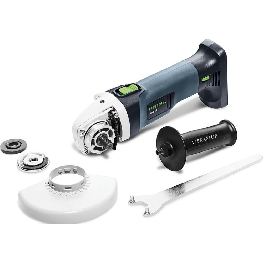 Festool AGC 18-125 body haakse accuslijpmachineKoolborstelloze motor• Onbelast toerental 4500-8500tpm• Incl. beschermkap, flens, sleutel, snelspanmoer en handgreep• In systainer SYS 2 T-LOC* Let op, wordt geleverd zonder accu's en lader