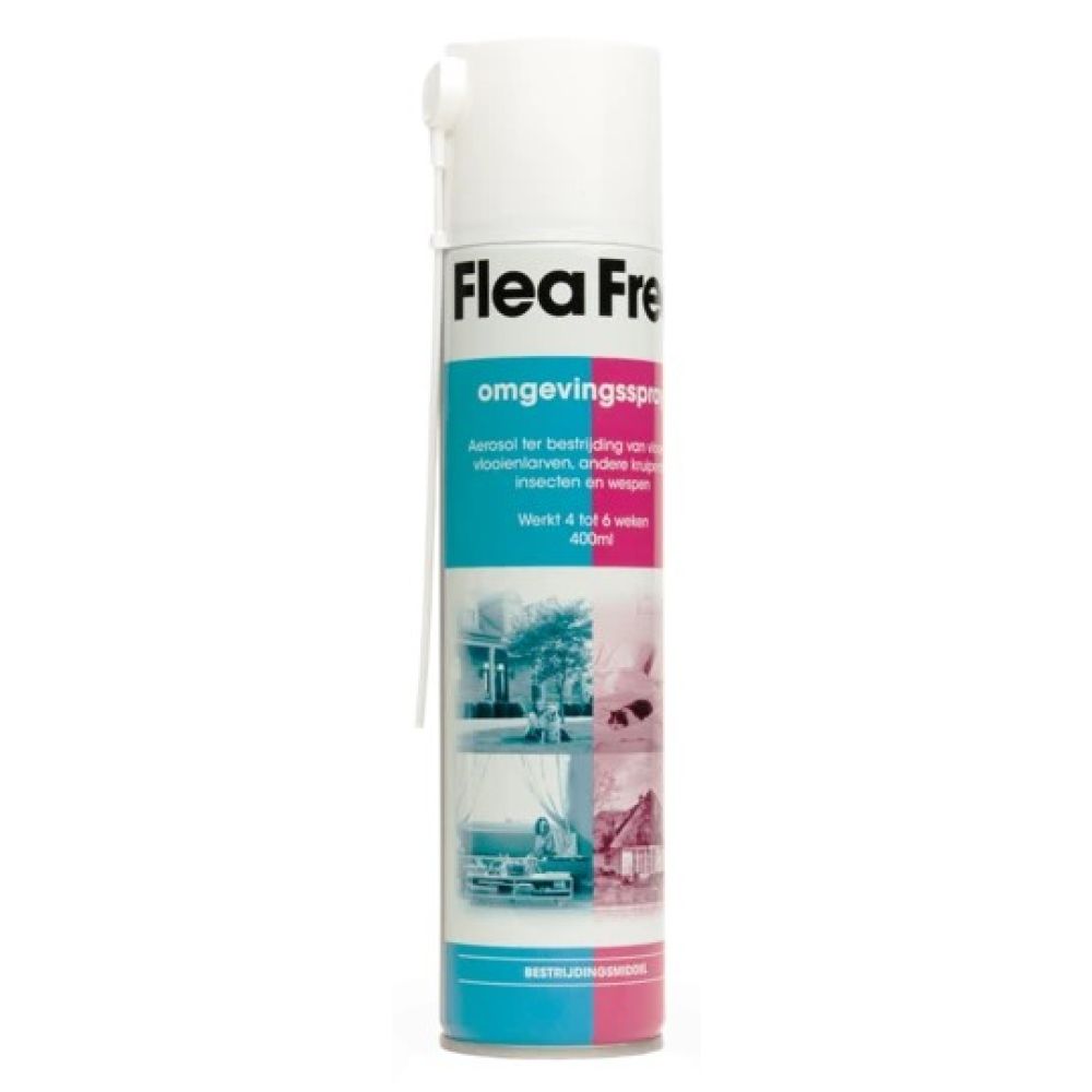 Flea Free Omgevingsspray is een spray ter bestrijding van kruipende insecten (zoals vlooien en kakkerlakken) en wespen in (woon)ruimten. Uitsluitend pleksgewijs toepassen en direct contact met voedingsmiddelen voorkomen. Niet toepassen op huisdieren en planten.