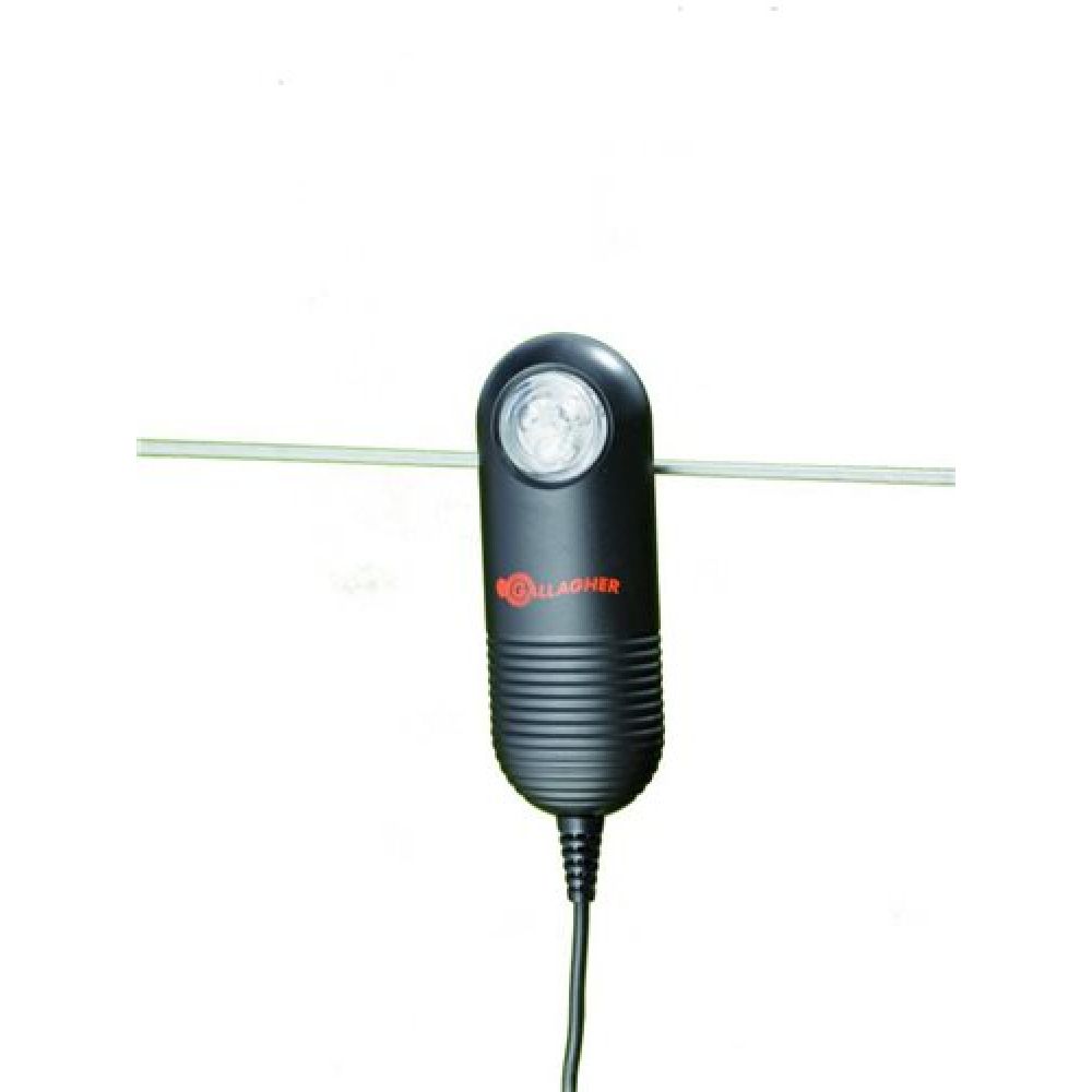 Gallagher afrasteringscontrole lampjeDe Live Light wordt aan het einde van de afrastering gemonteerd en geeft bij iedere impuls van het schrikdraadapparaat een felle lichtflits, zodat u 's avonds kunt zien of de afrastering nog in orde is. Zakt de spanning beneden de 3000V, dan begint de Live Light langzamer te knipperen. Zakt de spanning beneden de 2000V, dan stopt de Live Light met knipperen.