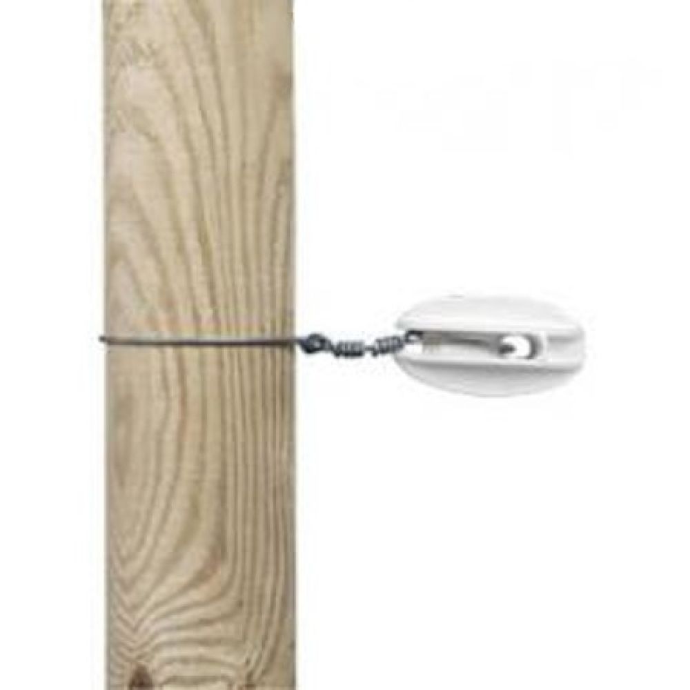 Isolator voor de begin- en eindpaal om draden op te kunnen spannen. uitgevoerd in supersterk polycarbonaat.