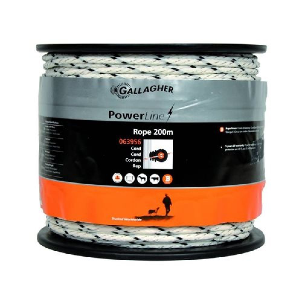 Gallagher PowerLine Cord Wit 200mGevlochten kunststofkoord voor (semi-)permanente paarden- en vee-afrasteringen. Een uitstekende geleider dankzij 6 roestvrijstalen draden en 1 mixed-metal draad.Specificaties: