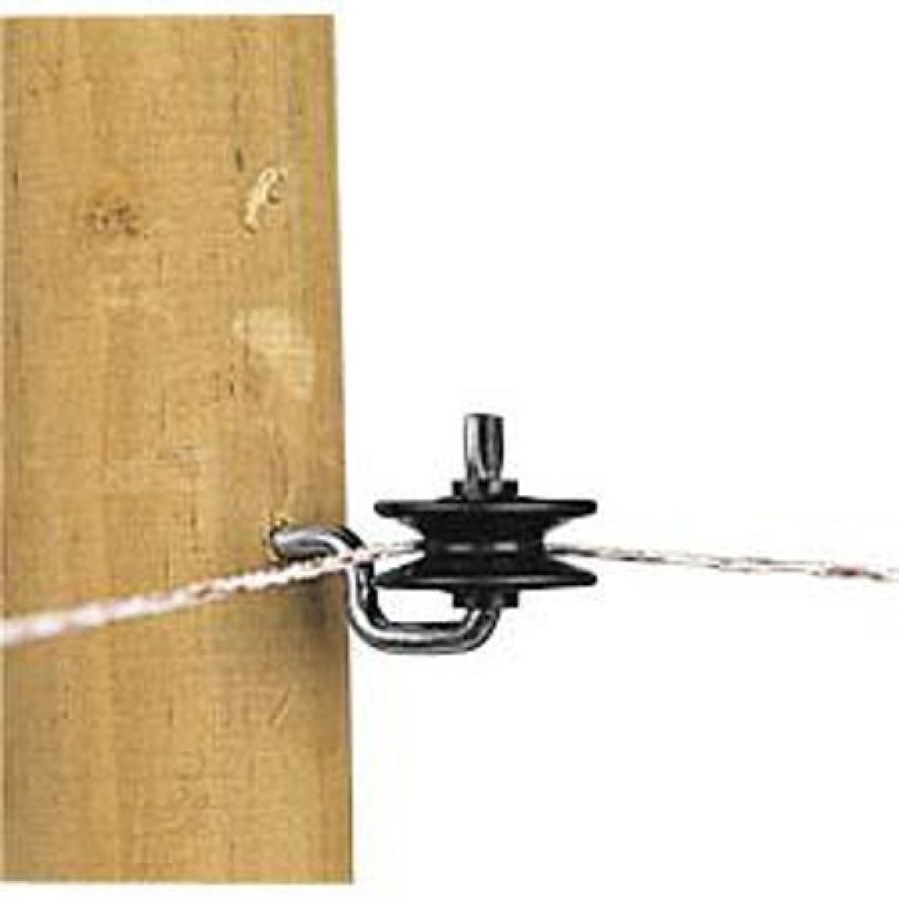 Te gebruiken als rol-hoekisolator in combinatie met de haspelhoekpaal of te bevestigen op een houten afrasteringspaal. Uitsluitend geschikt voor kunststofdraad. Met M6 draad.