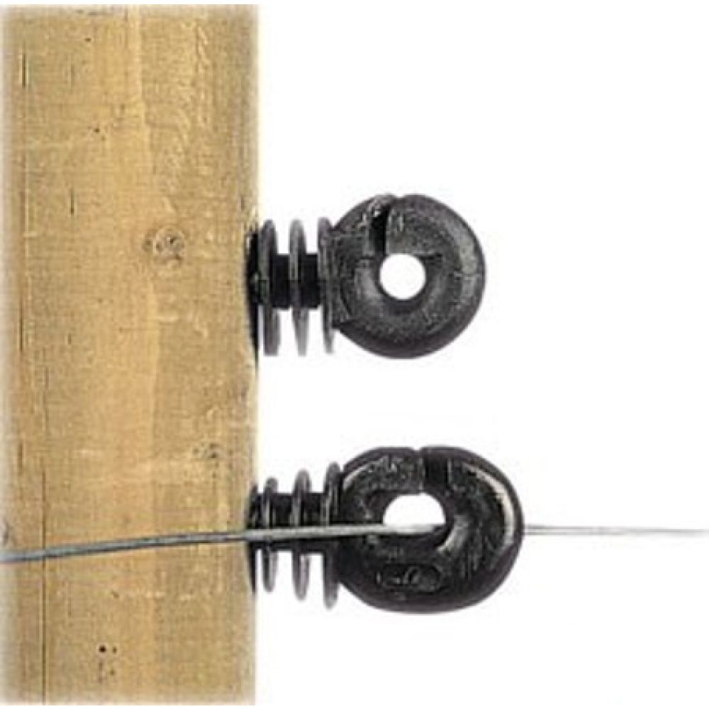 Zeer solide schroef-isolator zonder ijzeren kern, waardoor kortsluiting onmogelijk is. Voor het toevoegen van draad op een houten afrasteringspaal.Super 25 stuks - Super 250 stuks - Super 100 stuks zijn ook geschikt voor 12,5 mm lint.