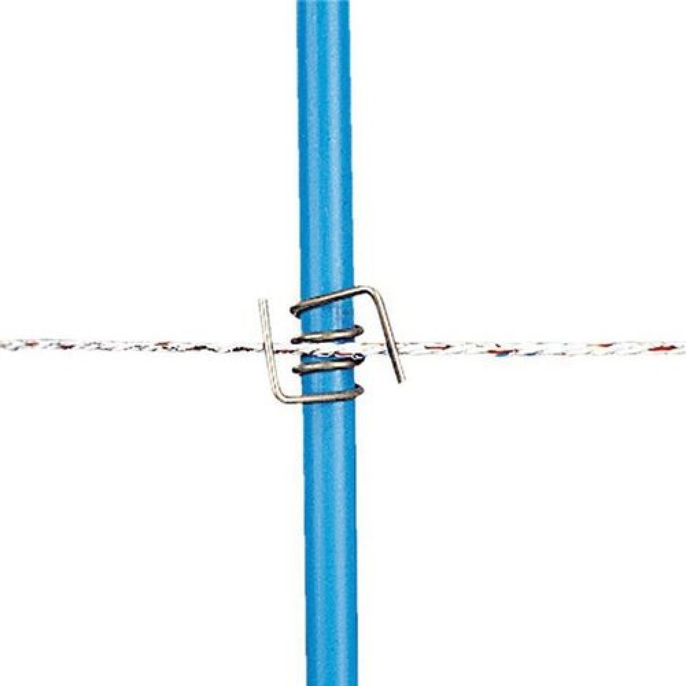 Voor het toevoegen van een extra draad op kunststof pvc palen. Het roestvrijstalen veertje heeft een zeer lange levensduur.Voor blauwe/zwarte paal.