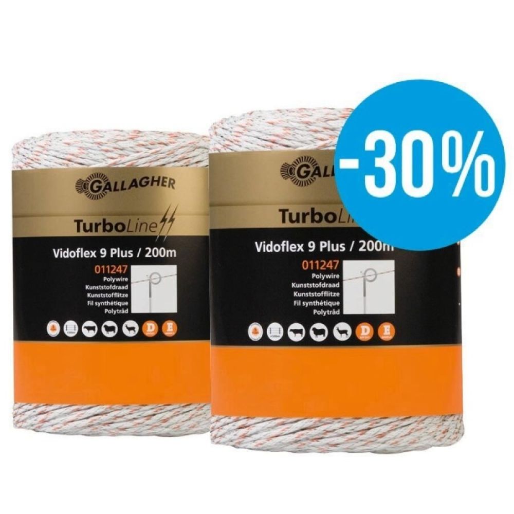 Gallagher Vidoflex 9 duopack wit 2x200mDuopack Vidoflex 9 Turboline Plus wit 2x200m is een kunststofdraad voor de beste stroomgeleiding over lange afstanden.