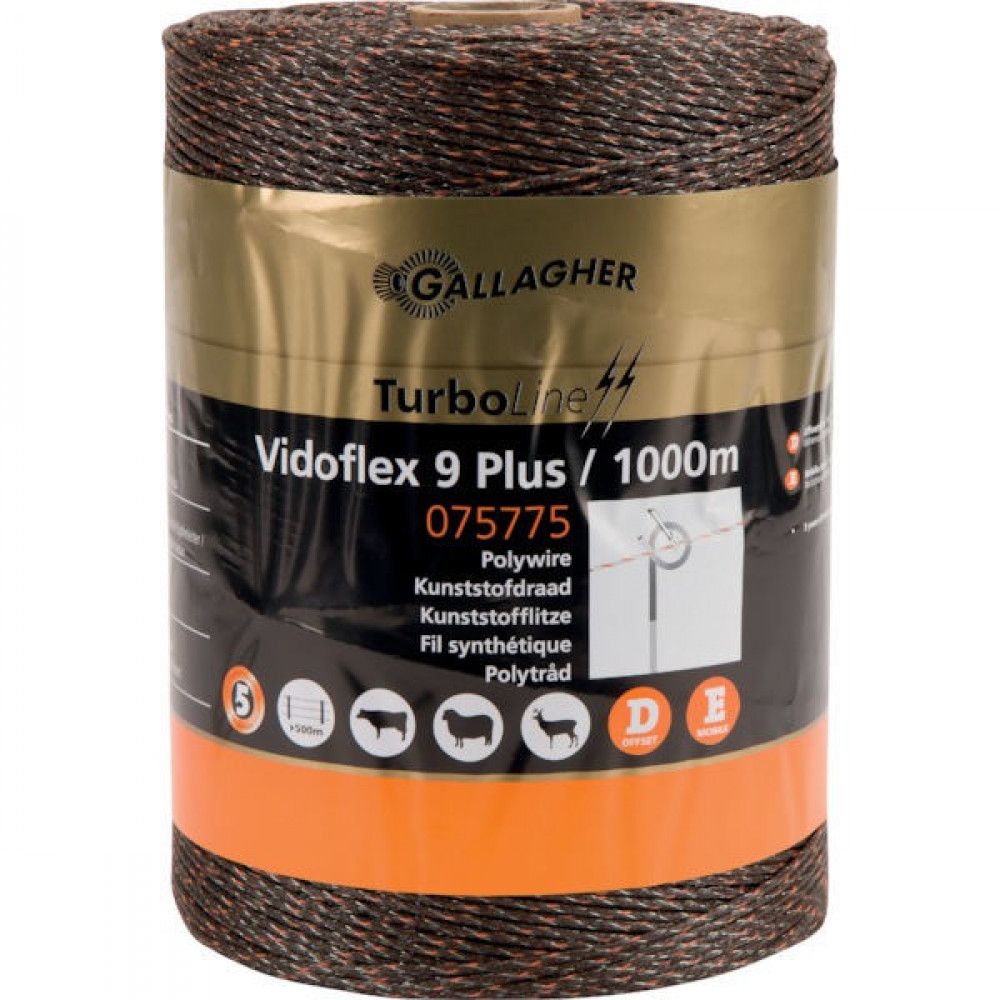 Gallagher Vidoflex 9 TurboLine Plus terra 1000mDé standaard in TurboLine kunststofdraad voor de beste stroomgeleiding over lange afstanden. De 6 roestvrijstalen draden en 3 lichtmetalen draden zorgen voor een TurboLine stroomgeleiding en geleiden daardoor 40x beter dan een standaard kunststofdraad. De TurboLine Plus uitvoering is bovendien ruim 50% sterker, voorkomt te veel rek en is nog beter zichtbaarder dan het gebruikelijke kunsstofdraad.