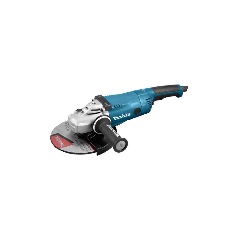 Haakse slijper GA9020RFK1 - 230VGebruikersvoordelen:- Voorzien van heropstartbeveiliging. LED geeft de status van de machine aan.- Slijper heeft optimale bescherming tegen stof: labyrint afdichtingen voor bij de overbrenging, tussen de overbrenging en het motorhuis, en achter het motorhuis. Daarnaast stofdichte lagers en O-ring afdichting in de overbrenging.- Het anker is door de zig-zag coating en het veld is door de poeder-coating vernislaag beter beschermd tegen stof en daardoor duurzamer.- Lagere motortemperatuur onder belasting en daardoor duurzamer.- Goed tegen stof beschermde schakelaar en daardoor duurzamer.- In drie posities verstelbare zijhandgreep.- Grote rubberen machinesteun beschermd werkstuk tegen krassen.- Krachtige 2200 Watt motor.- Leverbaar met veiligheidsschakelaar.Technische gegevens:- Opgenomen vermogen: 2200W- Aansluiting/opname: M14- Diameter slijpschijf (max.): 230mm- Asblokkering: Ja- Superflens: Ja- Softstart: Ja- Heropstartbeveiliging: Ja- Toerental onbelast: 6600 min-1- Kabellengte: 2,5m- Vibratie ah: 5,5 m/s2- Vibratie (K): 1,5m/s2- Geluidsdrukniveau (LpA): 89dB (A)- Afm. lxbxh: 473 x 249 x 140mm- Gewicht (EPTA): 5,8kg- Geluidsdrukniveau: 3 dB (A)