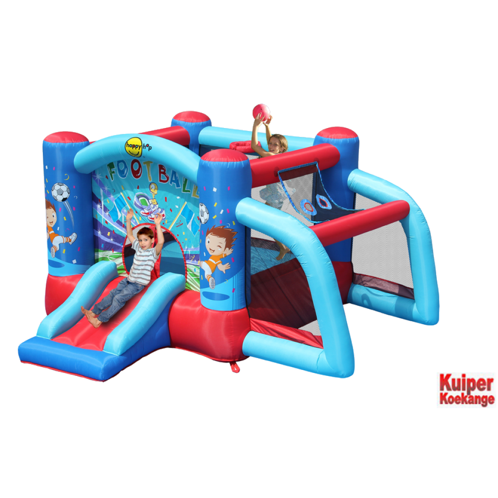 De Happy Hop Football bouncer is naast een springkussen ook nog eens een voetbal goal, voor plezier binnen en buiten de springkussen!