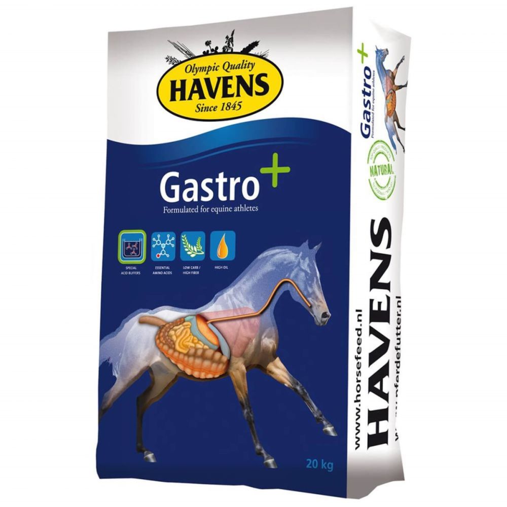 Havens gastro+ complete paardenvoeder - 20kgHAVENS heeft in samenwerking met Paardenkliniek Venlo een nieuw voer ontwikkeld!Ā Ā De Gastro+ is een speciale en complete 7mm brok (20 kg/zak) met unieke kenmerken:ā