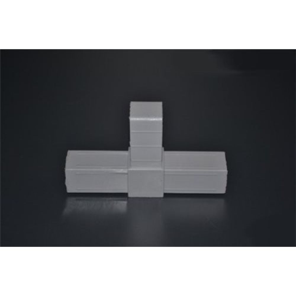 Hoekstuk t-splitsing 25mm grijsHoekstuk voor aluminium kokers van 25mm. Te gebruiken voor het bouwen van volières en terraria. Hoekstuk is gemaakt van kunststof en leverbaar in diverse kleuren.