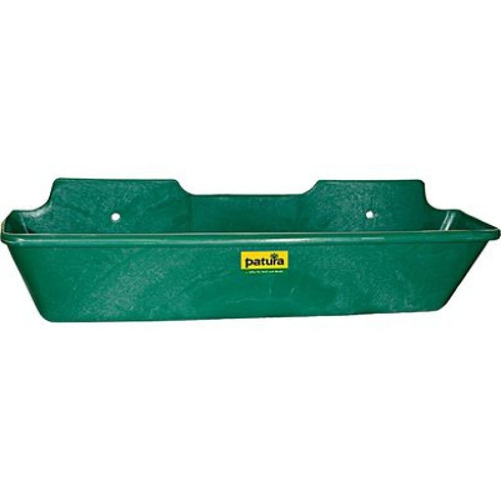 Patura lange kunststof voerbak 50L- Diepte 29cm.- Breedte 129cm.- Hoogte (zonder lipjes) 25cm.- Hoogte (met lipjes) 34cm.- Om aan wanden vast te schroeven.- Levering zonder schroeven.