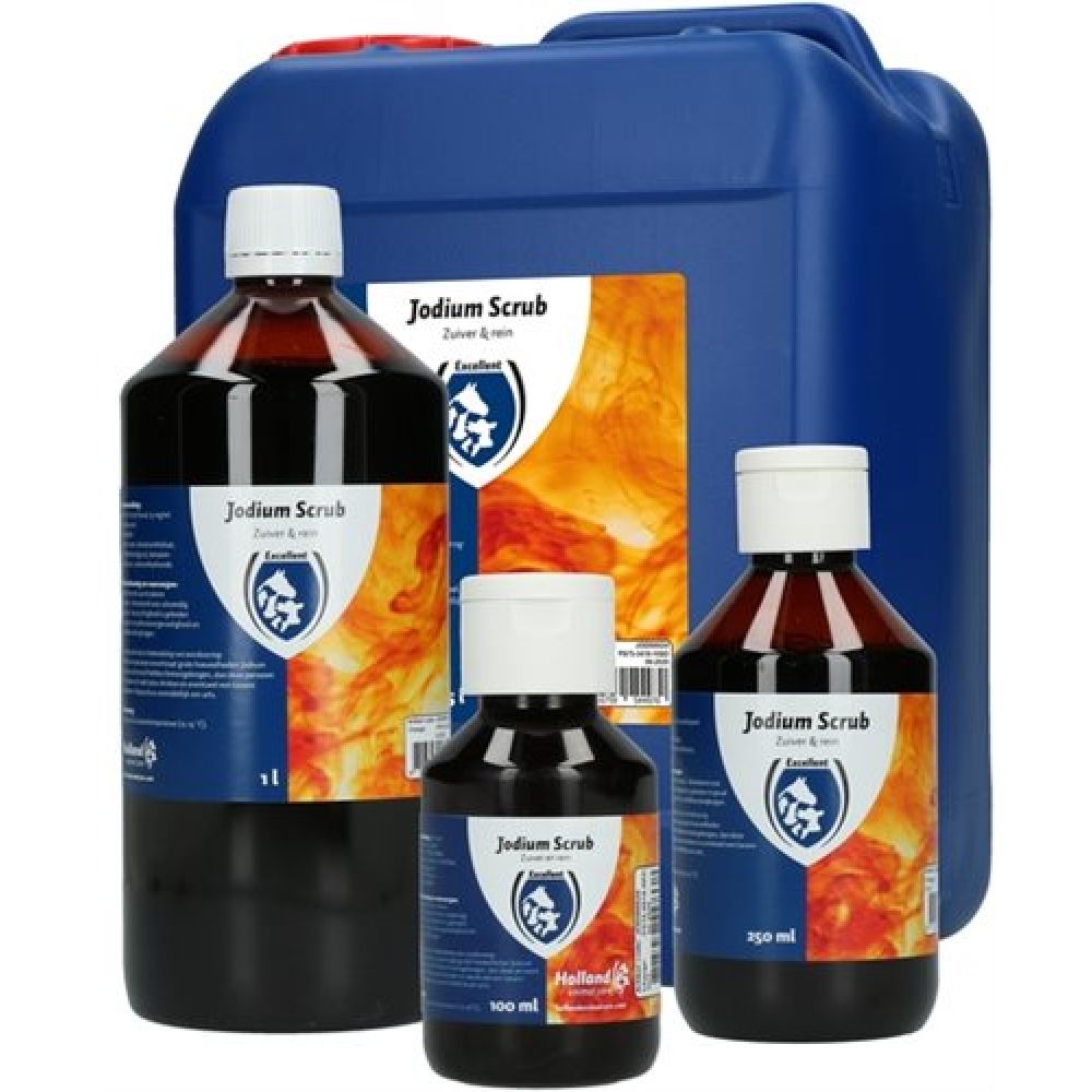 Jodium scrub - 250mlIdeaal voor het zuiveren en reinigen van de huid. Jodium Scrub is een krachtige zuiverende scrub zonder korreltjes. Ideaal voor het zuiveren en reinigen van de (kale) huid.Jodium Scrub heeft als bestanddeel povidonjodium. Povidonjodium is makkelijk oplosbaar in water en is prettig in gebruik omdat het niet prikt. Uitstekend geschikt voor het reinigen bij huidongemakken. Uitstekend geschikt voorSchaafwonden (huid zonder haar). ToepassenDe huid goed nat maken met schoon water en Jodium Scrub aanbrengen. De Jodium Scrub goed inmasseren totdat het schuimt. Vervolgens zorgvuldig afspoelen met lauwwarm water totdat de huid volledig is schoongespoeld. Tot slot de huid goed afdrogen, ook tussen de huidplooien. De behandeling 1 tot 2 keer per dag herhalen. SamenstellingVloeibare scrub met 75 mg/ml povidonjood.H