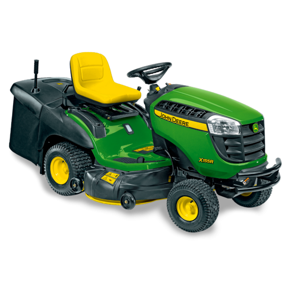 John Deere Tuintractor X155R Met grasopvangbak 12,5 kW V-twin Briggs & Stratton motor Hydrostatische transmissie 107 cm maaidek met grasopvang Elektrische maaiwerk inschakeling 300 liter gras opvang Urenteller en service interval melder Verstelbare stoel Verlichting Voorbumper CE-markering