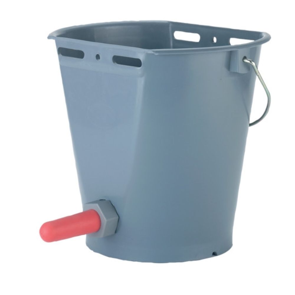 Duurzame lichte emmer compleet met koppeling en speen. Bodem van de emmer is bol zodat alle melk opgezogen wordt.H