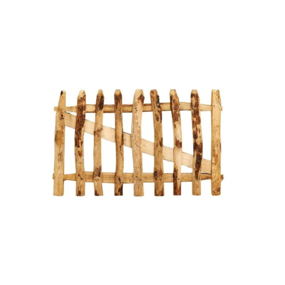 Kastanje poort 75cm hoog - 100cm breedPrijs is inclusief hang- en sluitwerk, exclusief palen en bevestigingsmaterialen.Het hang- en sluitwerk wordt los bijgeleverd en is niet voorgemonteerd.De genoemde maten horen bij de poort zonder palen en zijn bovendien nooit exact vanwege het rustieke karakter van de poort.De breedte van de poort wordt dus breder met de palen van uw keuze erbij.De flinke kastanjehouten latten zijn gemonteerd op een rondhouten frame met pen-gat-verbinding. Dit poortje is eenvoudig zelf te plaatsen.Kastanje poort 75cm 100cm 75 cm 100