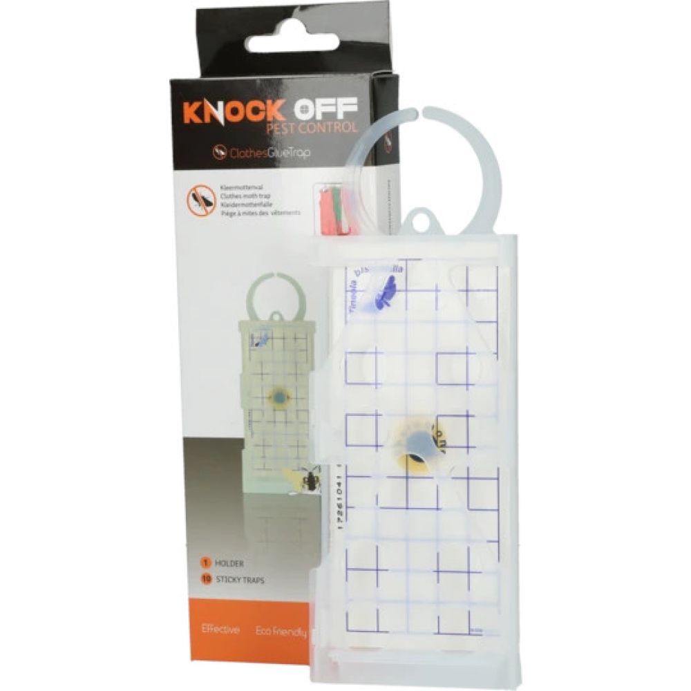 Knock Off KleermottenvalKleermottenval op basis van speciaal feromoon met zeer brede toepassingsmogelijkheden. Ideaal voor gebruik in huis, winkels, kantoren, restaurants, magazijnen, boerderijen etc.. De meegeleverde kunststof houder kan worden neergelegd of eenvoudig worden opgehangen. In de lijmlaag is het specifieke feromoon geïntegreerd voor het aantrekken van de kleermotten.
