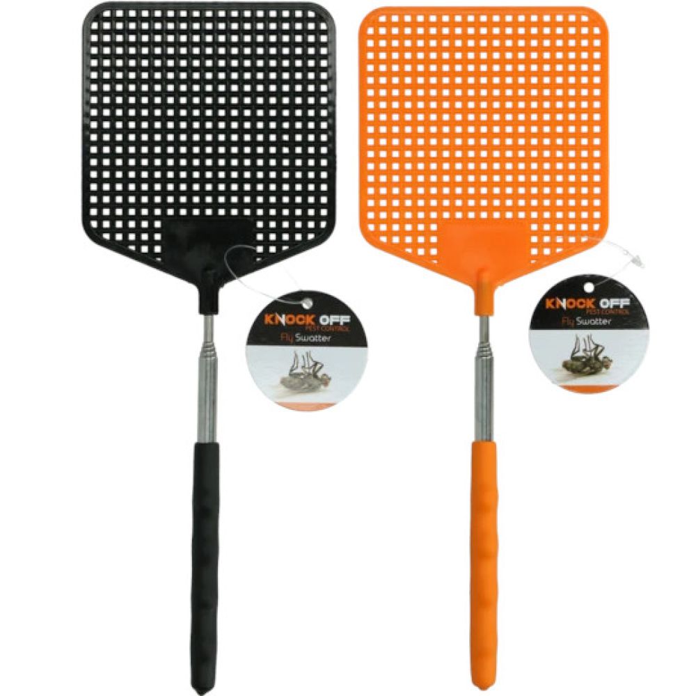 De Knock Off Vliegenmepper Telescopisch wordt in twee kleuren geleverd in een mooie en handzame display.