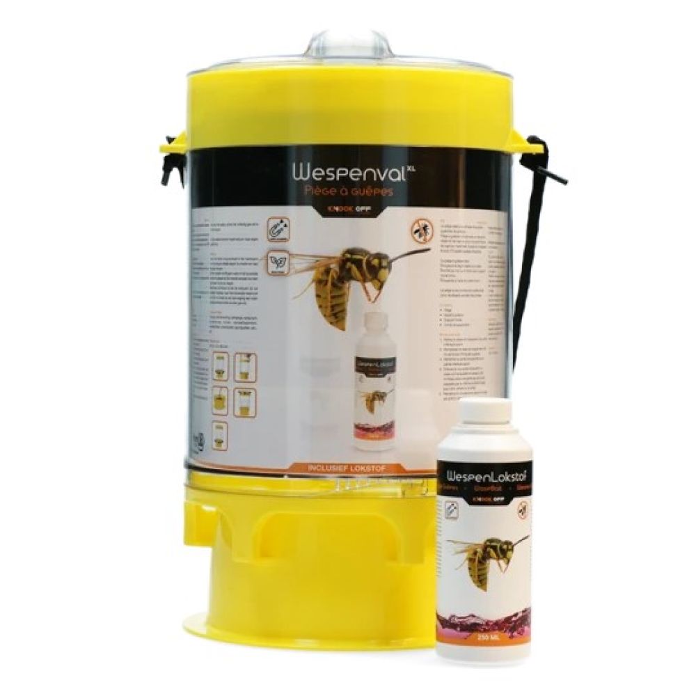 Robuuste wespenval met zeer groot vangreservoir uitgevoerd voor maximale vangprestaties.Voorzien van de onweerstaanbare Knock Off Wespenlokstof (WaspNip).
