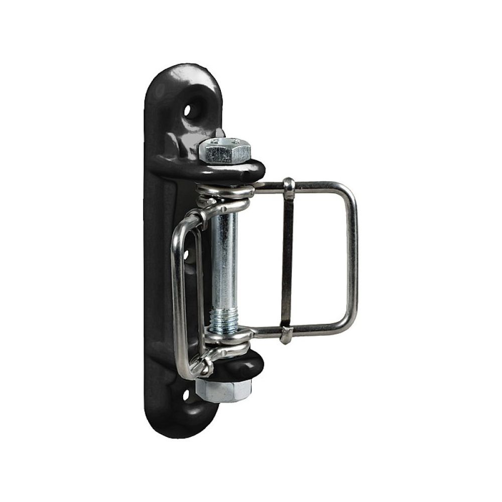 Koltec hoekisolator voor lint met spanbeugels - 4 stuksDegelijke hoekisolator voor lint voorzien van 2 RVS/INOX beugels met lintgesp. Deze isolator wordt met 3 schroeven vast gezet voor een solide montage. De aansluiting/doorverbinding van de schrikstroom kan eenvoudig onderaan de RVS/INOX as-bout m.b.v. de twee sluitringen. (per 4 stuks)