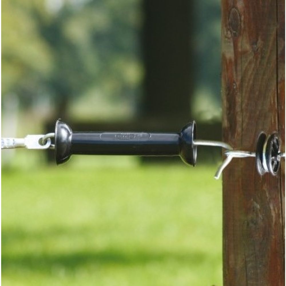Koltec poortgreep zwartDe Koltec poortgreep is gemaakt van speciaal kunststof dat ook na jaren gebruik nog soepel blijft. Bij deze poortgreep hoeft u niet bang te zijn dat u bij mistig weer een schok van uw poortgreep krijgt bij het openen van de poort. De sterke veer zorgt voor een bedrijfszekere afsluiiting en een zeer lange functionaliteit. De poortgreep is veel nagemaakt / gekopieerd, maar nooit geëvenaard. Let daarom op het Koltec logo om zeker te zijn dat u de echte koopt.