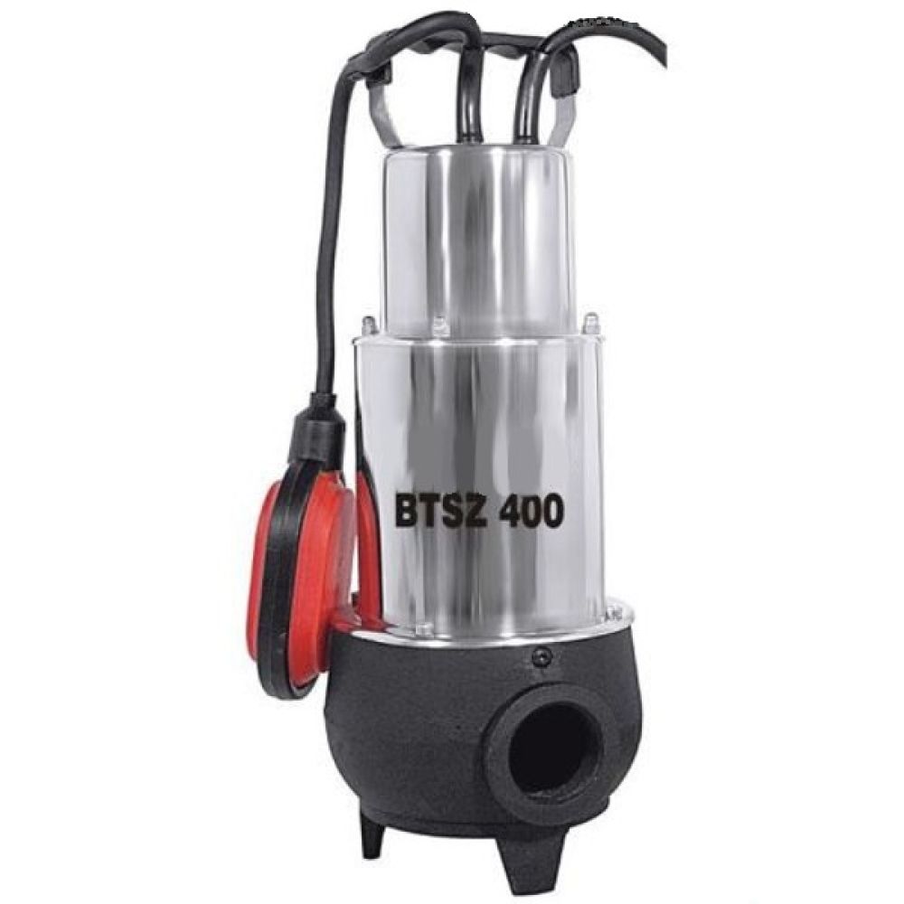 Type: BTSZ 400Nominaal vermogen: 1200 WV & Hz: 230/50Max. pompsnelheid: 24 m3 / hMax. hoogte van: 10 mMax. druk: 1 barPijp connector: 1 ½ "Kabel: HO7 RNF 3x1 mmLengte van de kabel: 10 mMax. temp.: 35 ° CGrootte van de verpakking: 220x185x450 mmGewicht: ca. 13 kgMax. duikdiepte: 3 mMax. maat van vaste stoffen: 30 mm