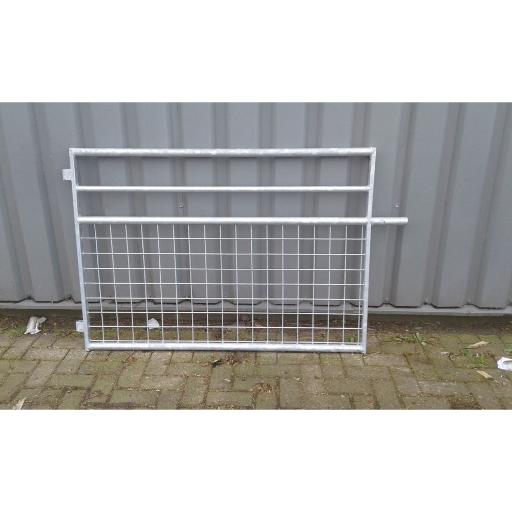 Landhek half gaas - rechte hoekenIdeaal voor het maken van kalveren of aflammer hokjes. Door middel van ogen en pennen met elkaar te verbinden. Ook te koppelen aan alle andere hekjes. Alleen in onze winkel in Koekange te verkrijgen.Maaswijdte: 7.5 x 7.5 cmLandhek landhekken land hek hekken half gaas rechte hoeken