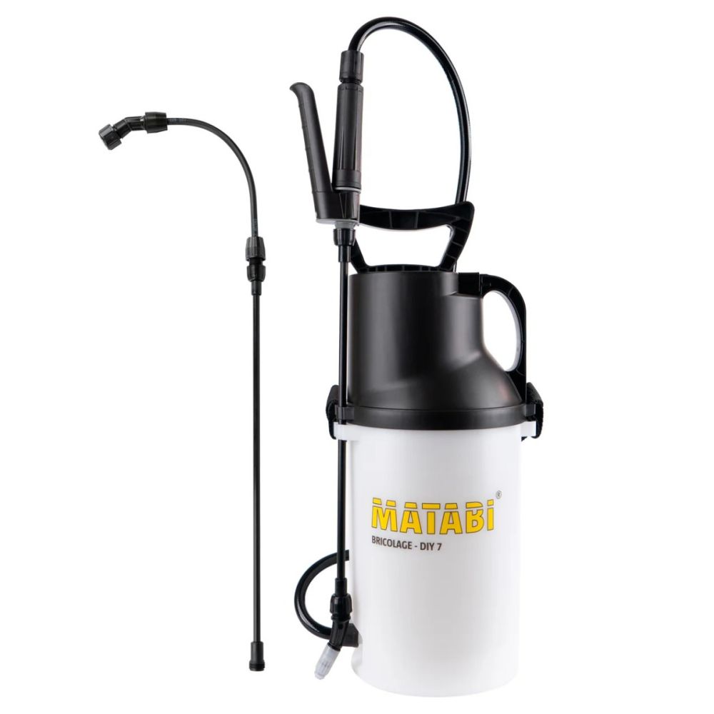 Matabi DIY 7 - 5L- Nuttige capaciteit 5 liter- Transparante tank- Flexibele tussenstuk om moeilijke bereikbare plaatsen te bereiken- Grote vulopening- Veiligheidventiel- Praktisch handvat voor transport- Extra verlengstuk van 0,42 meter- 2 verwisselbare mondstukken afhankelijk van de toepassing- Glasvezel lans- Transparante verstuiver zodat u het vloeistofniveau kunt zienUitermate geschikt voor gebruik met choor en azijn.Matabi DIY 7 DIY7 bricolage drukspuit druk spuit chloor zuur