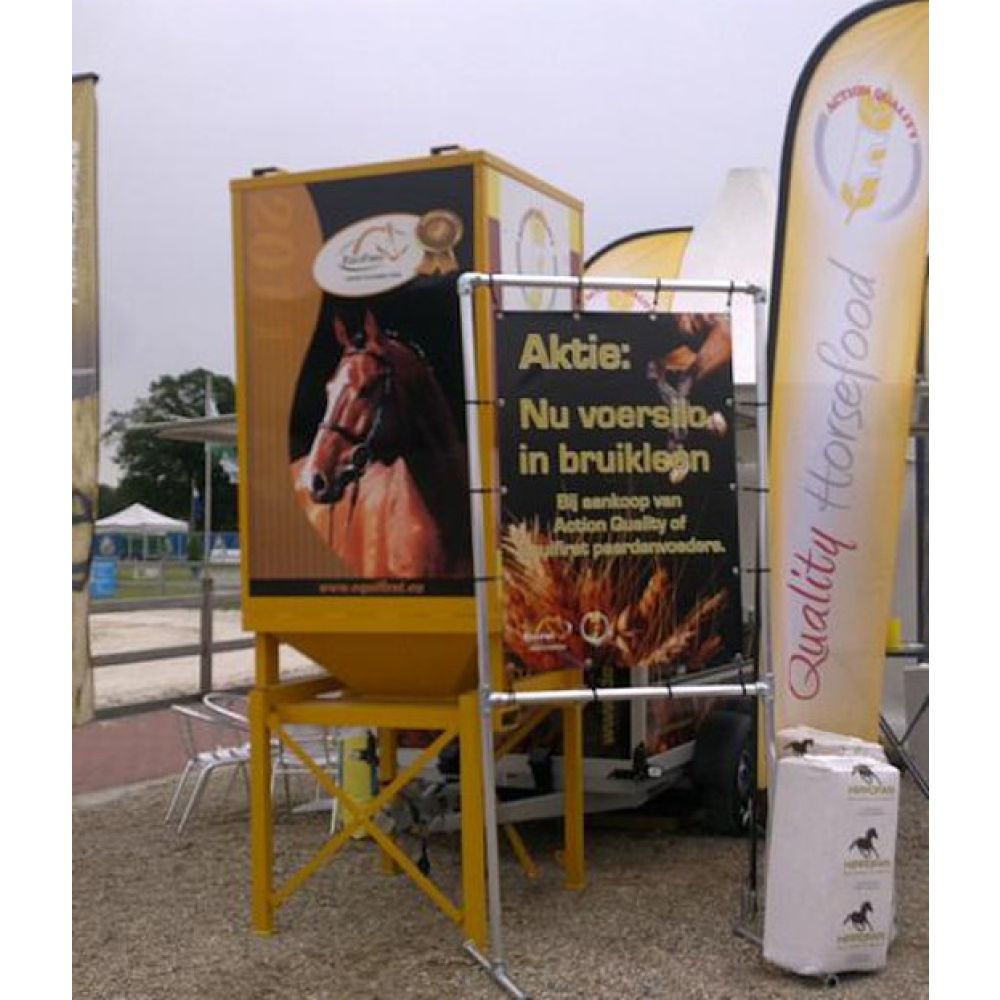 In deze mini silo kunt u 1000kg aan voer in kwijt. Ervaar nu zelf het gemak van een mini silo. Deze krijgt u in bruikleen bij een minimale afname van 1000kg aan paardenvoer.Mini silo voersilo voer paard paarden voeding paardenvoer paardenvoeding