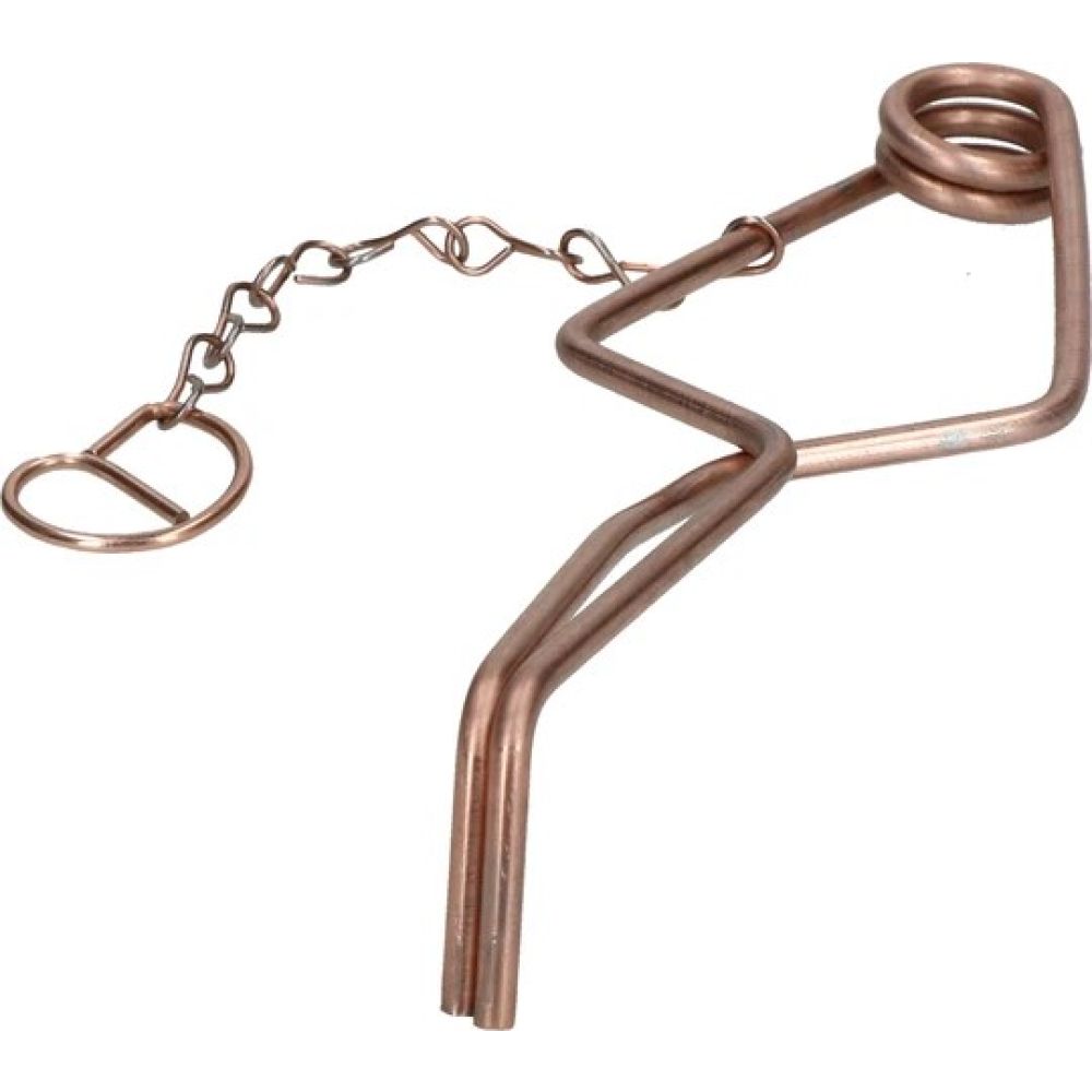 Koperen draadklem voor het vangen van woel- en veldmuizen. Zeer eenvoudig in gebruik. De klemring zit vast aan een ketting en kan zo niet zoekraken in de grond.Deze draadklem is ook prima in te zetten voor het vangen van mollen.