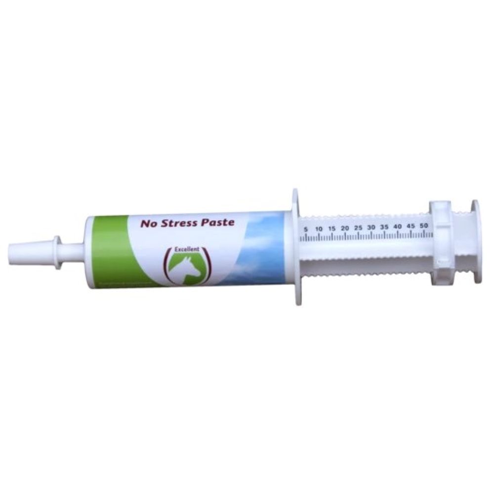 No stress paste horseNo Stress Paste is een smakelijke pasta op basis van het natuurlijk ingrediënt L-tryptofaan.Aanvullend diervoeder (dieetvoeder) voor paarden ter vermindering van stressreacties.No Stress Paste heeft een hoog aandeel aan natuurlijk L-tryptofaan met toegevoegd magnesium. L-tryptofaan en magnesium zijn belangrijk voor het optimaal functioneren van de zenuwen en spieren.No Stress Paste heeft een gunstig rustgevend effect op de gemoedstoestand van het paard. Het reduceert stressreacties zonder optreden van spierverslapping of sufheid.No Stress Paste is makkelijk in te geven via de mond van het paard. De smakelijke pasta wordt goed door het paard opgenomen. Inwerktijd van 40 minuten na toediening en een werkingsduur van maar liefst 3 uur. Verminderen van stressreacties, zoals in geval van• Transport• Bezoek aan de dierenarts, tandarts of hoefsmid• Wedstrijd• Scheren van paarden Gemakkelijk toepasbaar en ideaal te gebruiken in stresssituaties.Werkt al na 40 minuten en heeft een werkingsduur van maar liefst 3 uur. Voederadvies1 injector per paard (350 – 700 kg).H