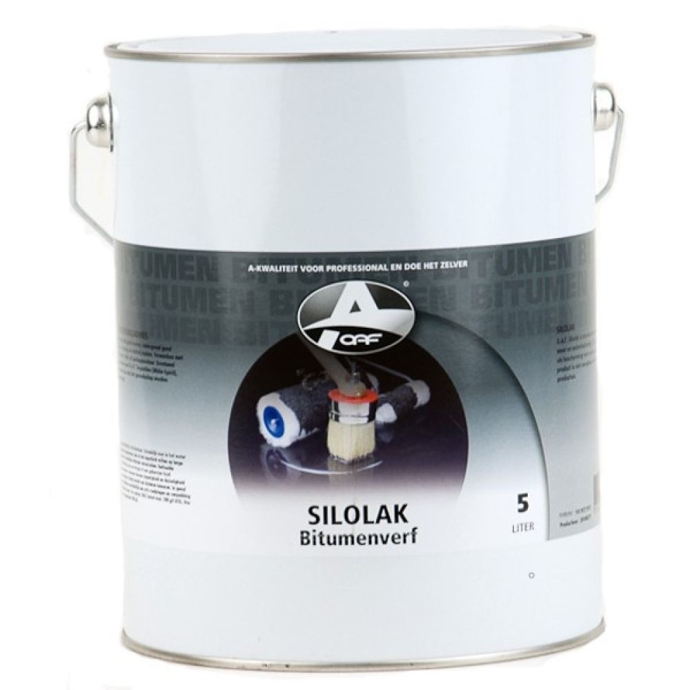OAF silolak 5LSAMENSTELLING:Silolak bestaat uit een harde bitumineuze component, vermengd met een vluchtig oplosmiddel en is als zodanig een koudverwerkbare bitumen.EIGENSCHAPPEN:Silolak is dun vloeibaar, geeft een zeer goede bescherming tegen roesten en op beton is het redelijk bestand tegen zuren, geeft een betrekkelijk harde niet klevende deklaag, hecht op beton / metaal / metselwerk / hout / enz.KLEUR:ZwartTOEPASSING:Met Silolak kan tegen geringe kosten een bescherming van metaaloppervlakken tegen corrosie worden verkregen, evenzo biedt het bescherming tegen agressieve invloeden op beton en steen. Dit product is uitermate geschikt voor mest / voer silo’s voor de bescherming van het beton. Door de hoge hardheid kan er met tracktoren en/of andere landbouwwerktuigen overheen worden gereden.DROGING:Stofdroog in ca. 2 uur, eventueel 2e laag na 4 uur, voorwerp kan eventueel in het water na 8 tot 12 uur droging bij minimaal 150 C en een relatieve luchtvochtigheid van maximaal 65% VERBRUIK: Op metaal ca 12 m² - en op beton ca. 5 m² per liter. Van groot belang is dat de ondergrond uiterst schoon en roestvrij is (ontdaan van alle loszittende delen) bovendien dient de ondergrond droog en vetvrij te zijn.VERWERKING:Met kwast, roller of spuitapparatuur.OVERSCHILDEREN:Na droging alleen met producten op bitumenbasis.VERPAKKING:1, 2,5 en 5 liter bussen.