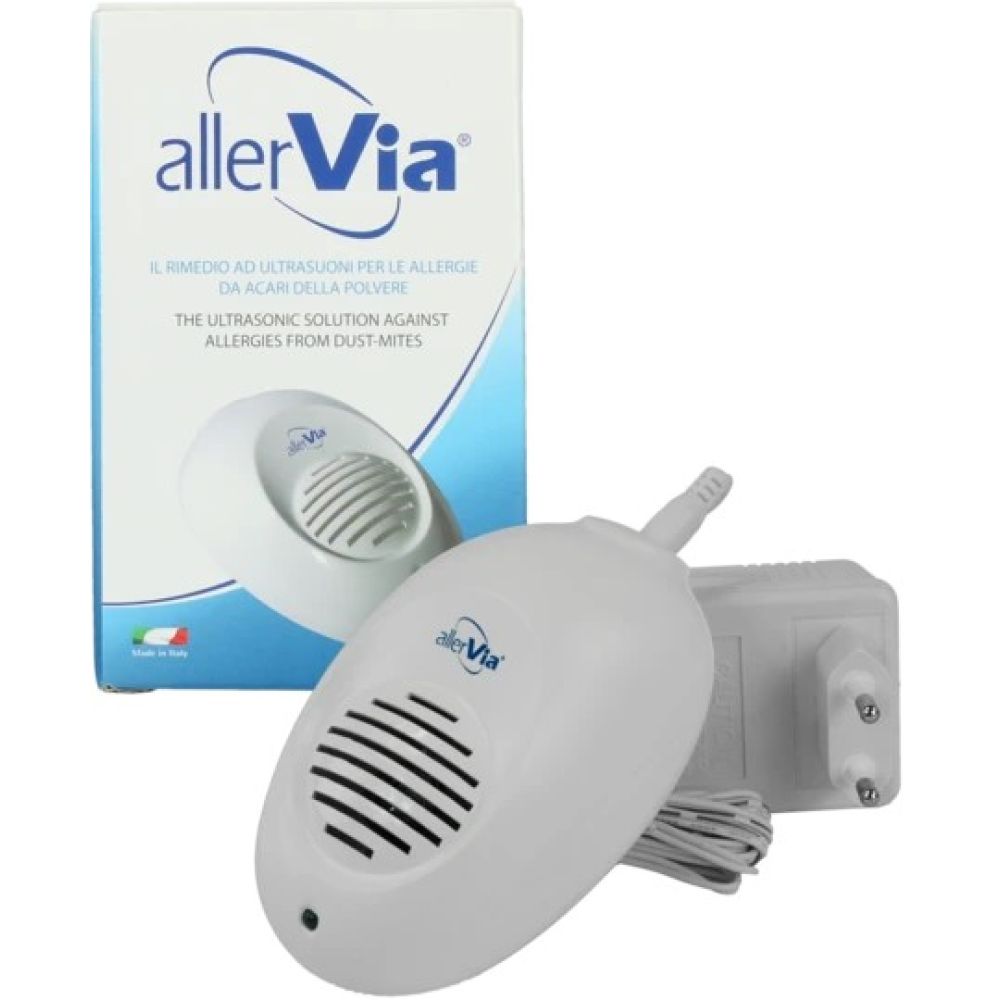 Olan allervia-E afweer - stofmijtAllerVia is de natuurlijke oplossing om stofallergieën te bestrijden. Het is een electronisch apparaatje dat ultrasone golven uitzendt die onhoorbaar zijn voor mens en dier, maar de levenscycles van mijten kan beïnvloeden door hun reproductievermogen af te remmen. De voordelen zijn progressief en zijn zichtbaar na ongeveer 6 weken van onafgebroken gebruik. InstructiesAllerVia-E wordt geleverd met een laagspanningstransformater die in een standaard 220-230V AC contactdoos moet worden gestoken. GebruikNa het plaatsen en aansluiten, zal een blauwe indicator aantonen dat het apparaat operationeel is. Het product moet zo worden geplaatst, dat er geen obstakels zijn die de verspreiding van de ultrageluiden verhinderen. De ultrasone geluiden verspreiden zich snel en worden makkelijk geabsorbeerd door zachte materialen zoals meubels en gordijnen. Het geluid werkt snel, zowel in warme als in koude lucht, terwijl de luchtvochtigheid de snelheid van het ultrasone geluid kan verminderen door de hoge frequentie. Een luchtvochtigheid van meer dan 85% vermindert het drukniveau van het geluid en ultrasone golven aanzienlijk. Bereik60-80 m³. De hoogfrequente geluiden kunnen niet door muren maar het bereik kan aanzienlijk worden vergroot door het weerkaatsen van geluid op objecten met reflectieve oppervlakten zoals spiegels. Het stroomverbruik van dit product is zeer laag. Formaat11 x 7 cmH