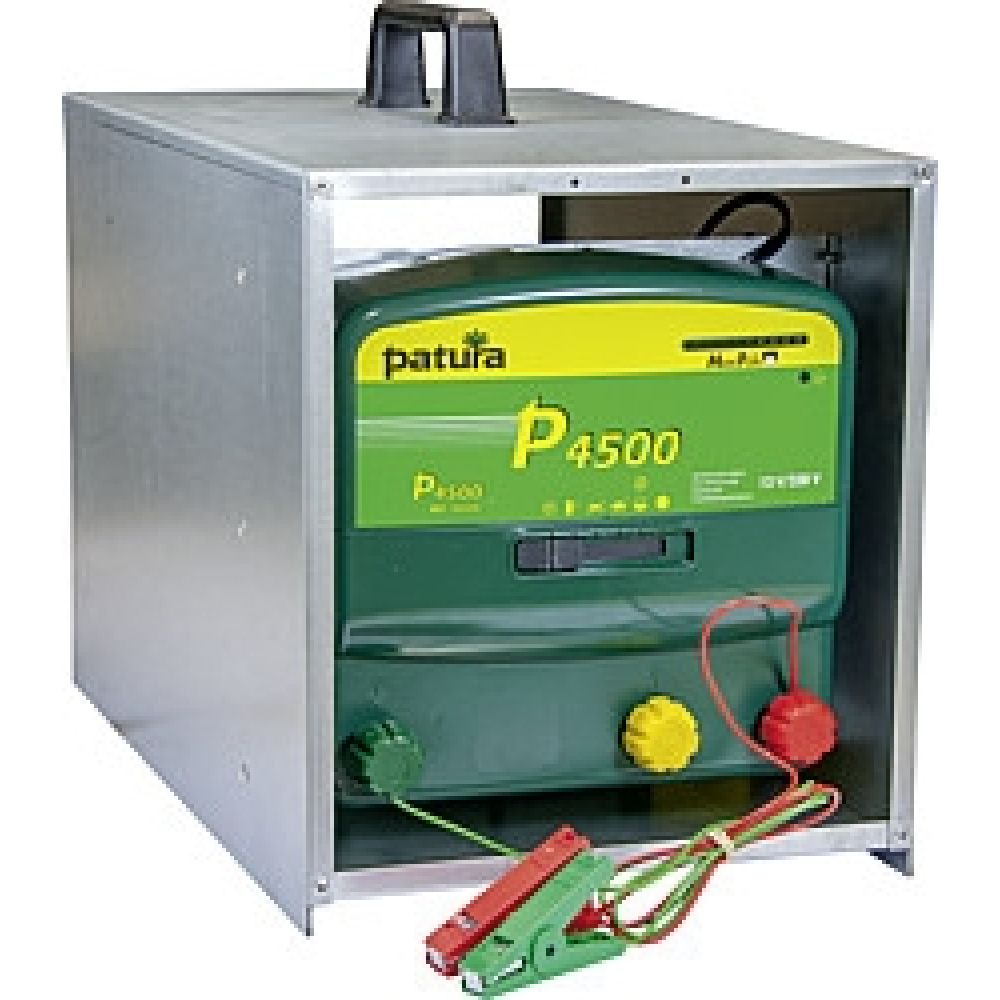 Grote draagbox gemaakt van verzinkt materiaal. De schrikdraadapparaten P1500, P4600, P100 en P300 kunnen worden gemonteerd. Voor de P100 en P300 is een extra montageset nodig, niet inbegrepen!