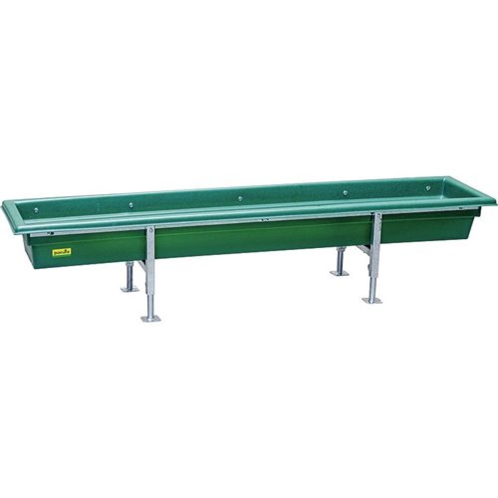 Voertrog op poten voor kalveren en schapen - 2mDeze Patura voertrog op poten 2m is gemaakt van zuur- en rotbestendig kunststof en kan dus ook goed gebruikt worden bij agressieve voermiddelen. Doordat deze voerbak gemaakt is van kunststof en beschikt over ronde randen met een geïntegreerde afvoer laat deze zich ook nog een gemakkelijk reinigen. De Patura voertrog beschikt over verstelbare poten. Zo kan deze op 50cm gezet worden waardoor het een mooie kalvervoerbak is. Of indien men de voertrog graag wil gebruiken als schapenvoerbak kan de hoogte op 32cm gezet worden. Specificaties: