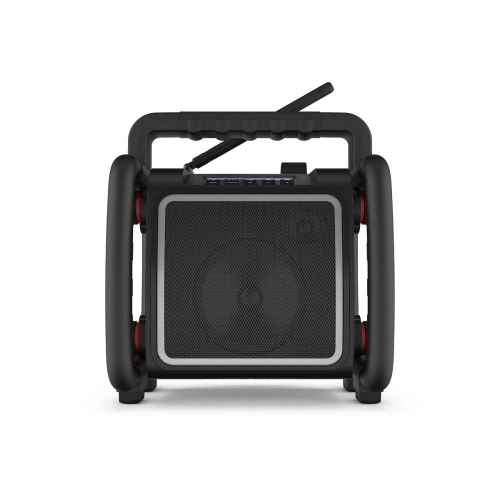 Full-option werkradio De Teambox heeft het allemaal: Een krachtige WOOFER in combinatie met Tweeter en een sterke ingebouwde lithiumaccu voor een extra lange speelduur. Fantastische prestaties op werkplekken binnen en buiten. Daarnaast is ie toch eenvoudig mee te nemen.