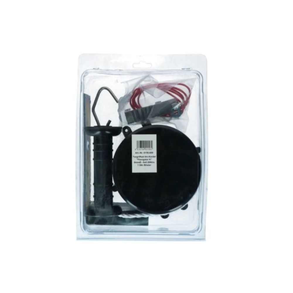 Set bestaat uit- Bevestigingsmateriaal- Deurgreep met koord- Aansluitkabel voor omheining met rvs-geleiders